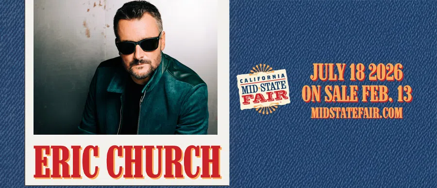 Catch Eric Church live at the California Mid-State Fair on Saturday, July 18 at 7:30 p.m., rocking the Grandstand Arena at the Paso Robles Event Center! Tickets go on sale Friday, February 13 on MidStateFair.com.
